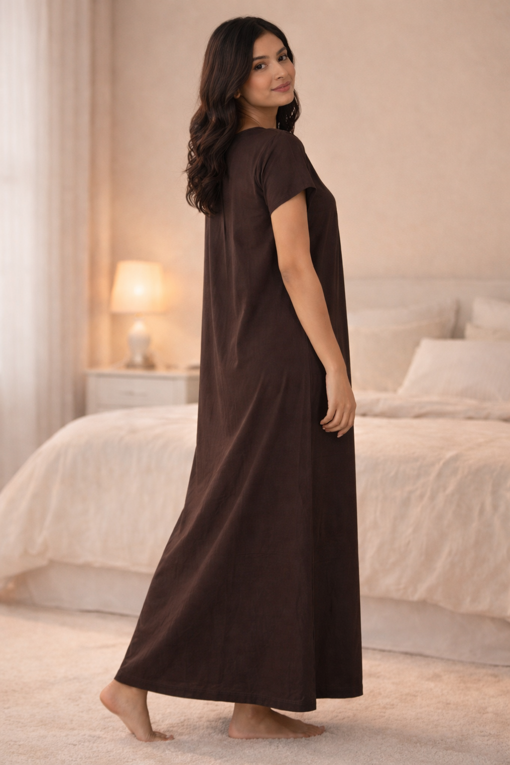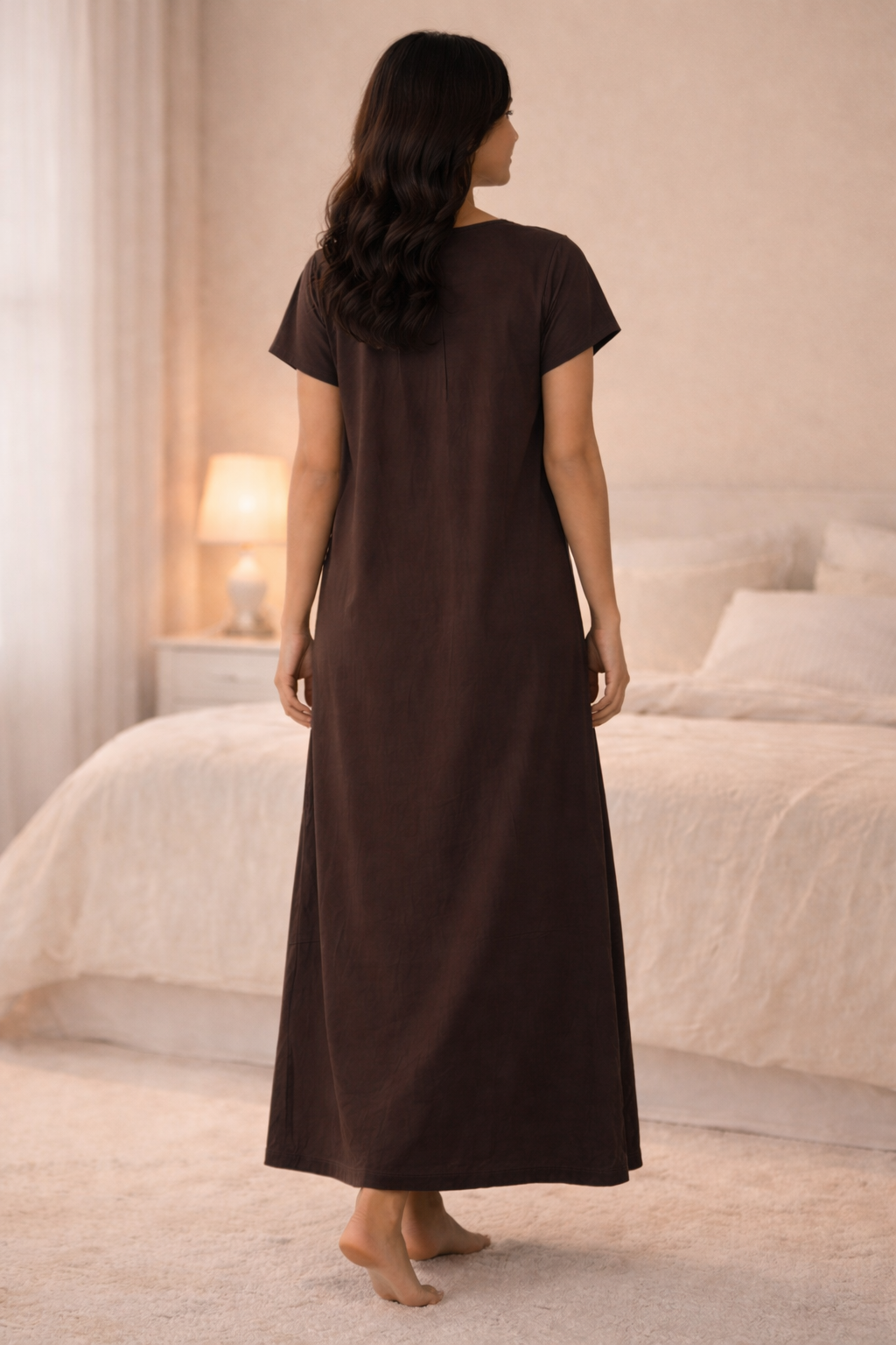 The Round neck and short’s sleeves.The relaxed silhouette ensures unstriated movement while the soft cotton fabric keeps you cozy throughout the night.